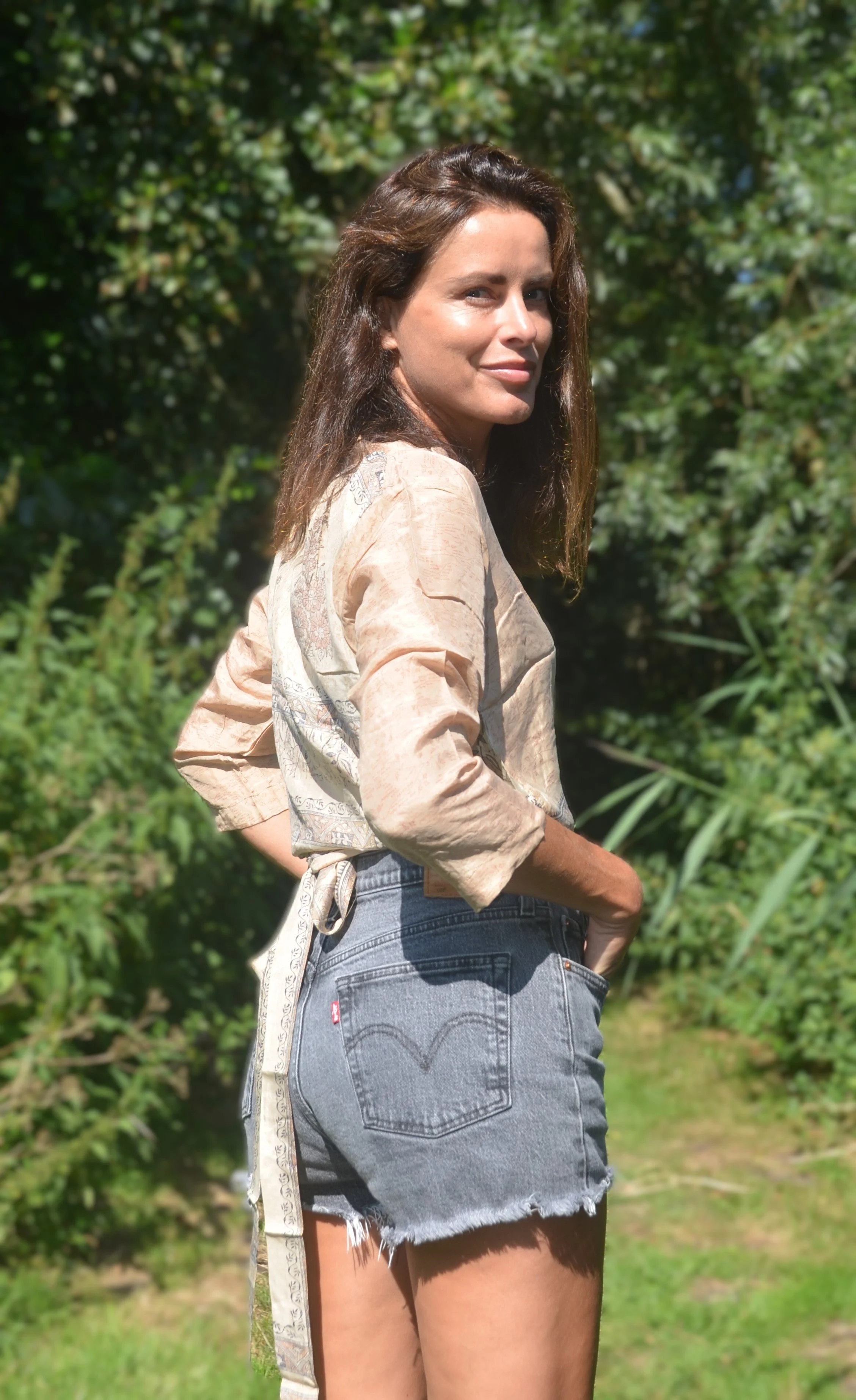Discover this stunning silk wrap blouse! Made from beautiful upcycled silk sarees, each piece is one-of-a-kind. Available in sizes S, M, and L.